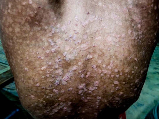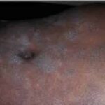 - Darker skin types tend to have more purple to grey plaques and tend to be thicker. There also tends to be more dyspigmentation (change in skin pigment).