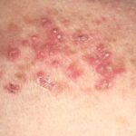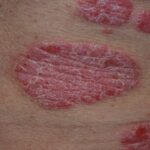 - Guttate psoriasis can sometimes appear scaly, and often develops suddenly after an infection (such as strep throat).