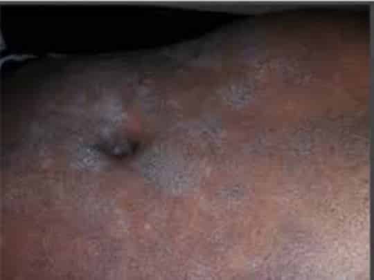 - It is often found on the arms, legs, and trunk and sometimes in the scalp.